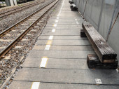Czarny i żółty w pociągu stacja sygnału niebezpieczeństwa: Wybierz fokus z płytkiej głębi ostrości :