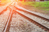 torów kolejowych na żwir dla transportu kolejowego z zachód światło dźwięk