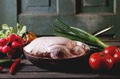 surowy kurczak z warzywami