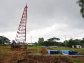 fokus rozmycie budowlane z pracownika w pracy, budowy