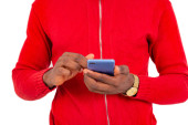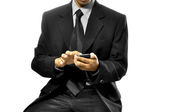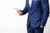 Profesjonalny biznesmen inteligentny telefon komórkowy na białym tle
