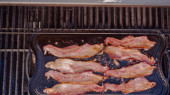 Smażenia boczku na patelni żeliwnych, Grill gas odkrytym.