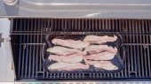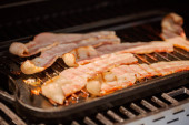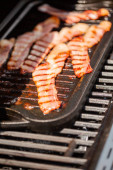 Smażenia boczku na patelni żeliwnych, Grill gas odkrytym.