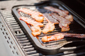 Smażenia boczku na patelni żeliwnych, Grill gas odkrytym.