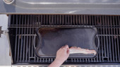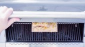Gotowanie grilla kanapkę z serem na grill gazowy odkryty.