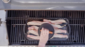 Gotowanie grilla kanapkę z serem na grill gazowy odkryty.