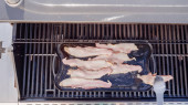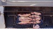 Gotowanie grilla kanapkę z serem na grill gazowy odkryty.