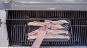 Gotowanie grilla kanapkę z serem na grill gazowy odkryty.