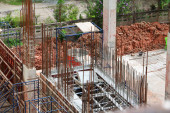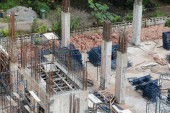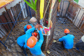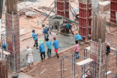 fokus rozmycie budowlane z pracownika w pracy, budowy