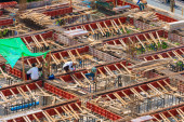 trznadel budowlane w budynku w miejscu pracy z zachód słońca jasny odcień