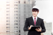 Zdjęcie "podwójnej ekspozycji, biznesmen z notatnika w ręku podpisywanie dokumentów w konstrukcji witryny pracy koncepcja." może być wykorzystywane do celów osobistych i komercyjnych zgodnie z warunkami zakupionej licencji Royalty-free. Obraz jest dostępny do pobrania w jakości wysokiej rozdzielczości do 5760x3840.