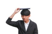 podwójnej ekspozycji, biznesmen z notatnika w ręku podpisywanie dokumentów w konstrukcji witryny pracy koncepcja.