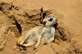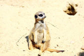 Meerkat (Suricata suricatta) na piaszczystej ziemi do stróżowania i bezpieczeństwa