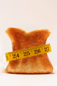 Stos plasterki świeżego białego pieczywa białego miara na białym tle