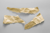 Brązowy papier rozdarty na szarym tle. Kolekcja papieru rip.