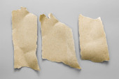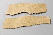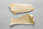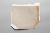 Brązowy papier rozdarty na szarym tle. Kolekcja papieru rip.