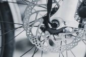 Piasty przód Mountain Bike Close-Up. Rowerów Tarcza hamulcowa