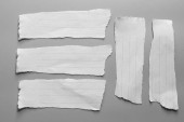 Zestaw z białej taśmy na szarym tle. Poszarpane poziome i różnych wielkości biały taśmą klejącą, kawałki kleju.