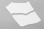 Biały podarty papier na szarym tle. zrywanie papieru kolekcji