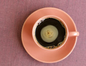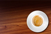 Kawa espresso z bliska na tle drewna