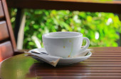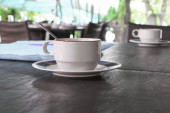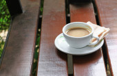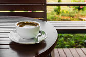 Kawa w Pucharze na podłoże drewniane podłogi