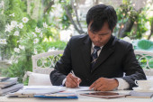 Zdjęcie "podwójnej ekspozycji, biznesmen z notatnika w ręku podpisywanie dokumentów w konstrukcji witryny pracy koncepcja." może być wykorzystywane do celów osobistych i komercyjnych zgodnie z warunkami zakupionej licencji Royalty-free. Obraz jest dostępny do pobrania w jakości wysokiej rozdzielczości do 5760x3840.