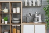 Nowoczesna kuchnia wnętrz z nowe meble i inne naczynia