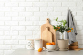 Zdjęcie "Nowoczesna kuchnia wnętrz z nowe meble i inne naczynia" może być wykorzystywane do celów osobistych i komercyjnych zgodnie z warunkami zakupionej licencji Royalty-free. Obraz jest dostępny do pobrania w jakości wysokiej rozdzielczości do 5760x3840.