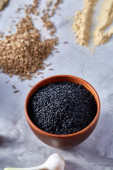 Zdjęcie "Trzy gliniane misy z asortyment pikantne ułożone na drewnianym stole, widok z góry, zbliżenie, selektywnej ostrości." może być wykorzystywane do celów osobistych i komercyjnych zgodnie z warunkami zakupionej licencji Royalty-free. Obraz jest dostępny do pobrania w jakości wysokiej rozdzielczości do 5760x3840.