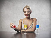 Młoda kobieta noszenie maskarady śmiejąc się na imprezie.