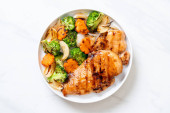 griled piersi kurczaka stek z warzyw (brokuły, marchew, cebula)