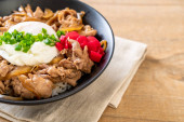 miska ryżu wieprzowego z jajkiem (Donburi) - japoński styl jedzenia