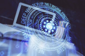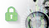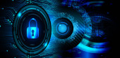 Streszczenie okrągły przycisk cyfrowego. Koncepcja bezpieczeństwa i ochrony sieci Web. renderowania 3D