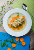 Świeża Zupa jarzynowa z kurczaka pierogi, Fotografia żywności