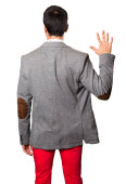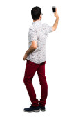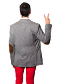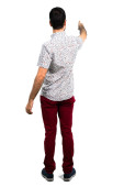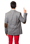 Zdjęcie "Przystojny mężczyzna wskazuje z powrotem palec" może być wykorzystywane do celów osobistych i komercyjnych zgodnie z warunkami zakupionej licencji Royalty-free. Obraz jest dostępny do pobrania w jakości wysokiej rozdzielczości do 5760x3840.