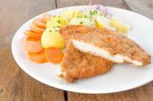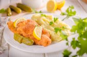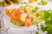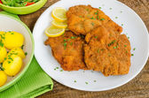 Weiner świeże schitzel oryginalny, tłuczone ziemniaki, pickless cytryny i ziół na górze