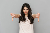 Zdjęcie "Wizerunek niezadowolony smutny panienka, stojąc na białym tle nad szarym tle ściany zrobić przystanek gest." może być wykorzystywane do celów osobistych i komercyjnych zgodnie z warunkami zakupionej licencji Royalty-free. Obraz jest dostępny do pobrania w jakości wysokiej rozdzielczości do 5760x3840.