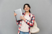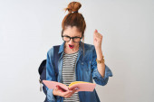 Zdjęcie "Wizerunek studenta całkiem Ładna panienka, stojąc na białym tle nad szarym tle ściany prowadzące księgę." może być wykorzystywane do celów osobistych i komercyjnych zgodnie z warunkami zakupionej licencji Royalty-free. Obraz jest dostępny do pobrania w jakości wysokiej rozdzielczości do 5760x3840.
