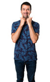 Przystojny mężczyzna z zaskoczenia i zszokowany wyraz twarzy