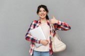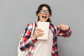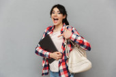 Zdjęcie "Wizerunek student szczęśliwy panienka, stojąc na białym tle nad szarym tle ściany trzymania książek." może być wykorzystywane do celów osobistych i komercyjnych zgodnie z warunkami zakupionej licencji Royalty-free. Obraz jest dostępny do pobrania w jakości wysokiej rozdzielczości do 5760x3840.