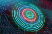 Cyfrowy biznes okrągły tło interfejsu. Koncepcja bezpieczeństwa i ochrony sieci Web. renderowania 3D