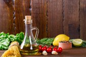 Zdjęcie "Differens olej z kilka włoskie spaghetti, makaron raw soba i comen, awokado z pomidorami na stare drewniane tła, miejsce. Koncepcja gotowania domowe jedzenie z miejsca kopii" może być wykorzystywane do celów osobistych i komercyjnych zgodnie z warunkami zakupionej licencji Royalty-free. Obraz jest dostępny do pobrania w jakości wysokiej rozdzielczości do 5760x3840.