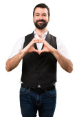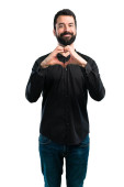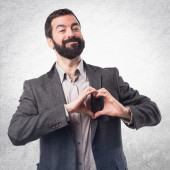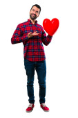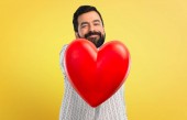 Przystojny mężczyzna trzyma zabawki ikona wielkie serce