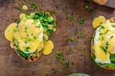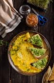 Omlet jaj z czosnku awokado toast, bio jaja i świeże zioła, ketchup domowej roboty
