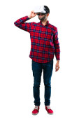 Przy użyciu okularów Vr przystojny mężczyzna. Wirtualna Rzeczywistość doświadczenia