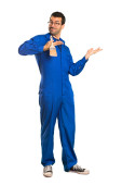 Szczęśliwy przystojny mężczyzna młody na białym tle