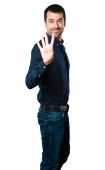 Przystojny, młody człowiek z rękami skrzyżowanymi na białym tle