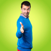 Młody przystojny mężczyzna liczenia jeden na białym tle