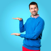 Przystojny, młody człowiek, skierowaną w górę na białym tle