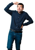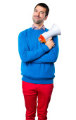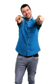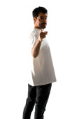 Przystojny, młody człowiek, skierowaną do przodu na białym tle